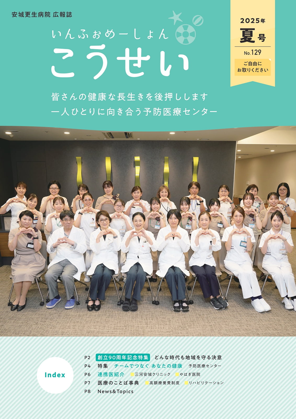 安城更生病院の概要や施設・連携医紹介、健康レシピや病気にまつわる情報などを掲載しているフリーペーパーです。
