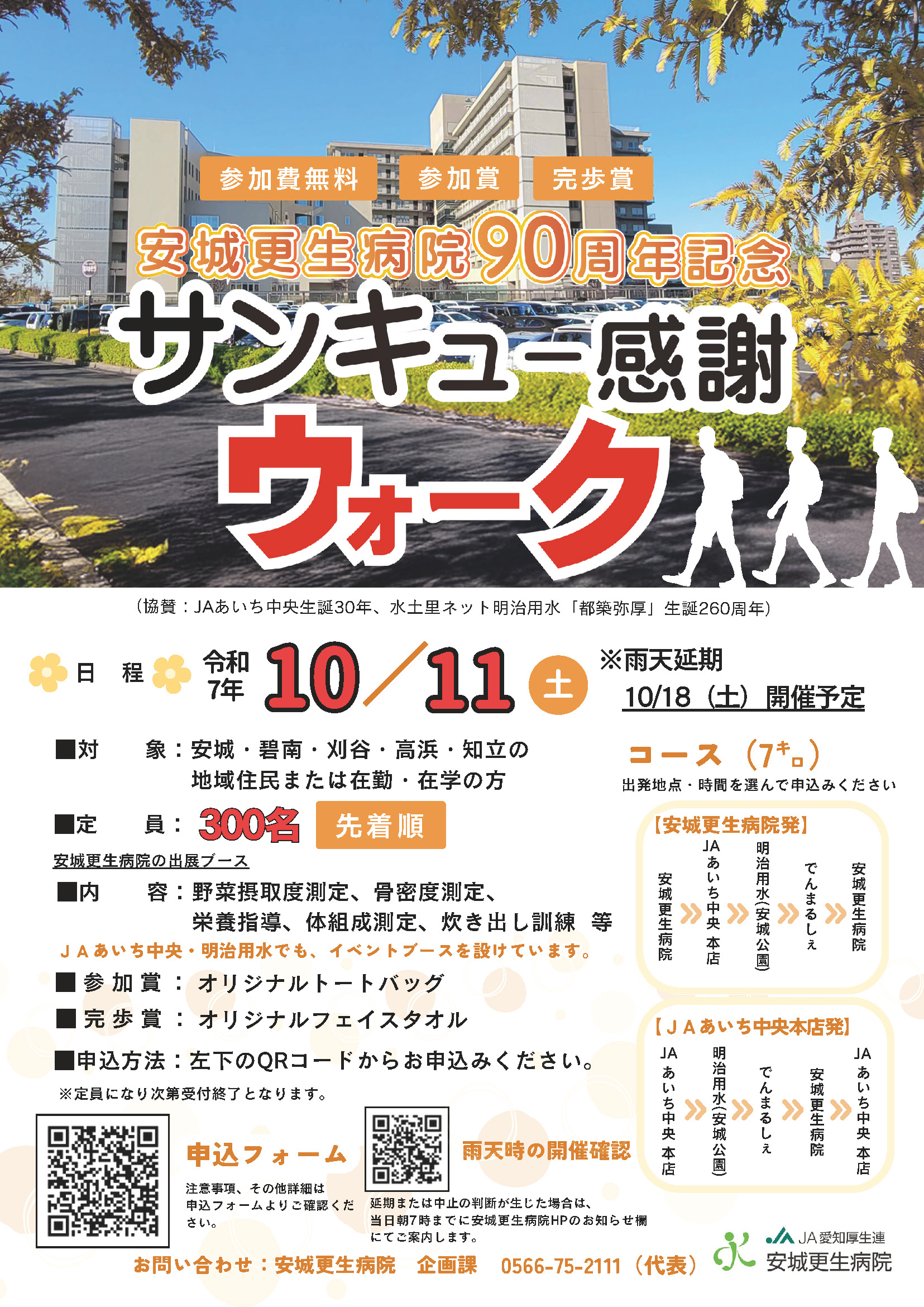 - 安城更生病院→JAあいち中央本店→明治用水(安城公園)→でんまるしぇ→安城更生病院